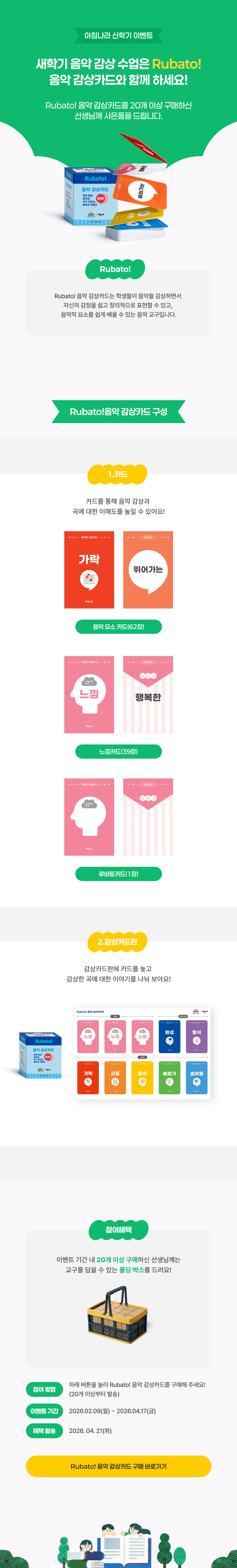 - 본 이벤트는 이벤트 기간 내 Rubato! 음악 감상카드를 주문하신 선생님께 한하여 발송됩니다.